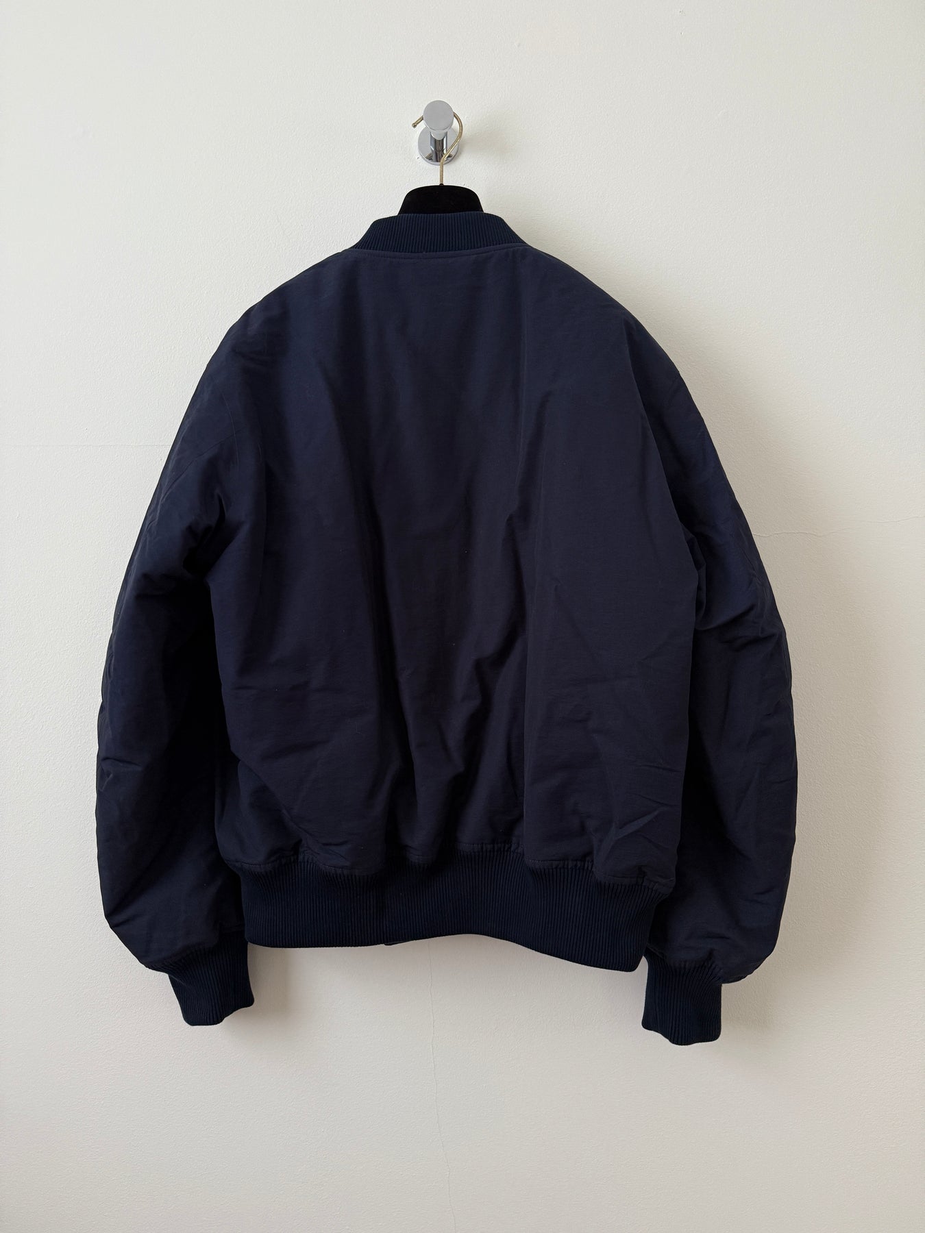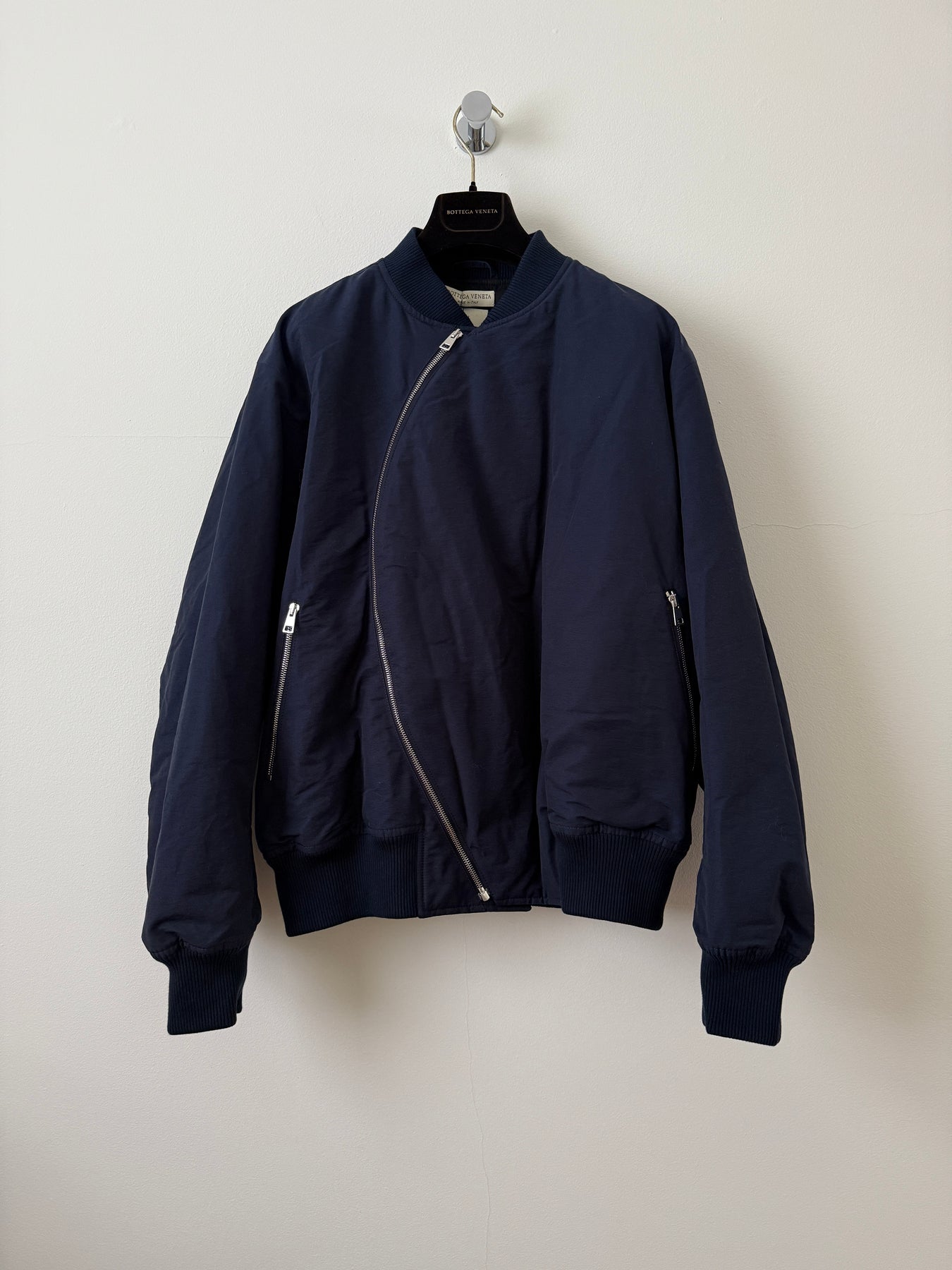 Bottega Veneta Spiral Zip Bomber Jacket in Navy.