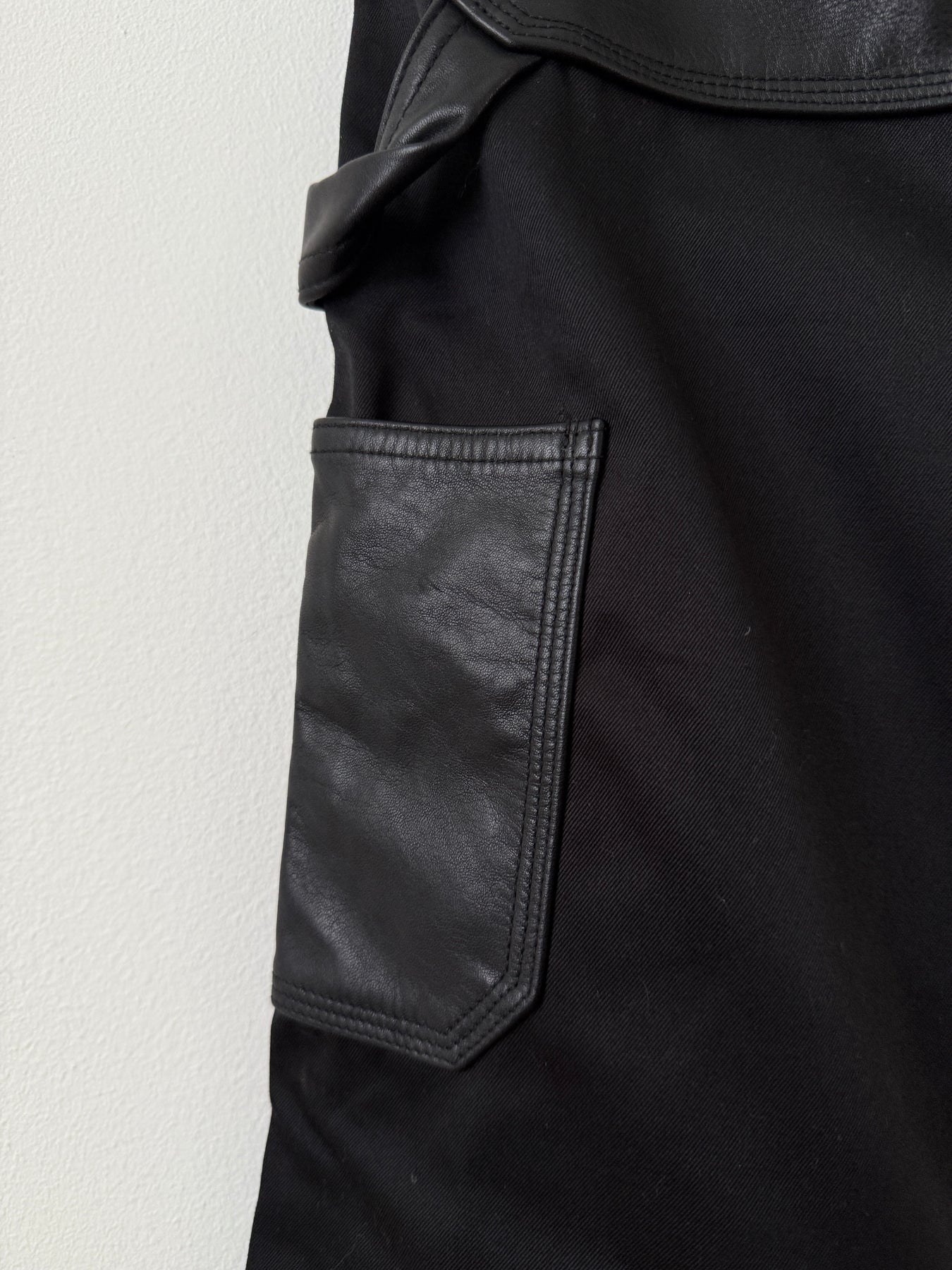 The Adagio Leather Trousers are Vuja De's take on the classic double knee carpenter trousers. Panels and pockets are replaced with high quality Italian Nappa leather to promote warmth on the most exposed areas of the lower body during cold winters. Double Cobrax snap closures with natural horn buttons on the waist and an adjustable leg opening enhance versatility in wear.