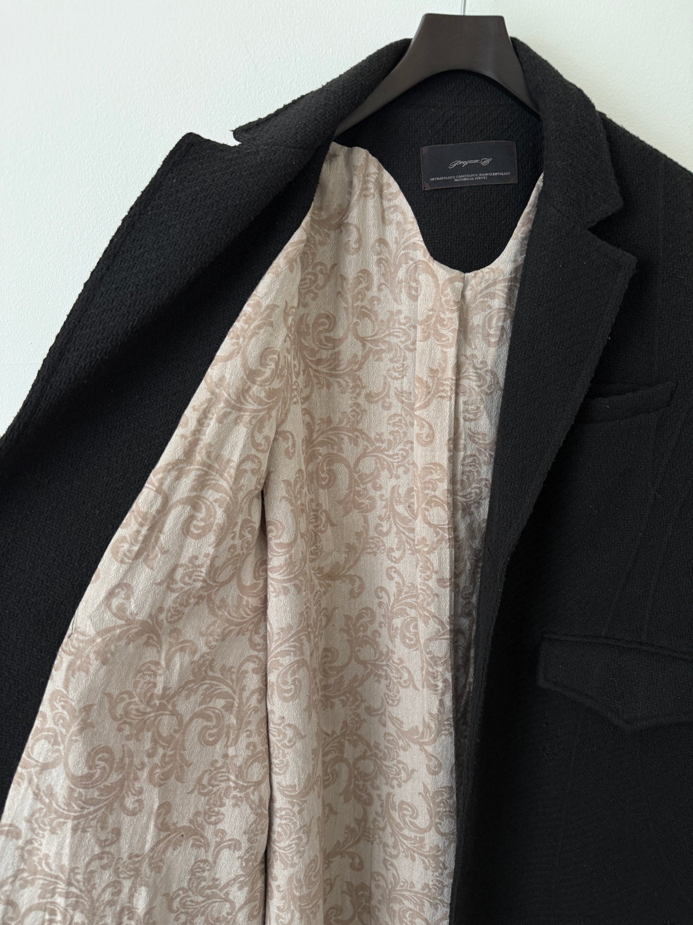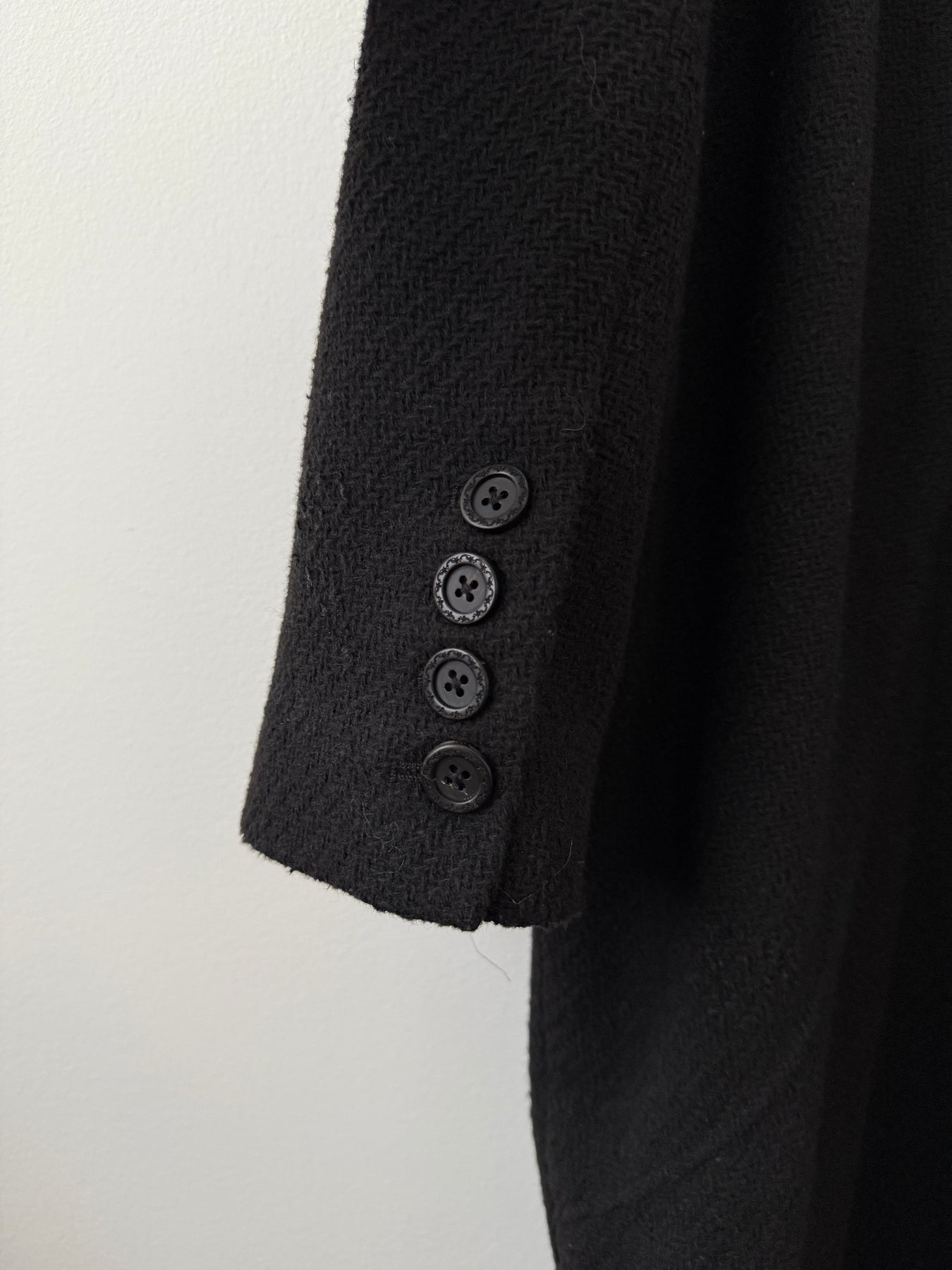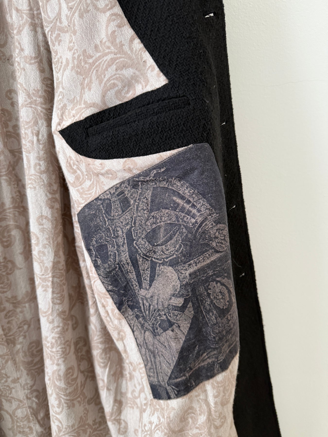 Really heavyweight. Perfect for those colder months. Amazing distressing and quality. Beautiful, comfortable lining. Crazy asymmetrical stitch detailing.