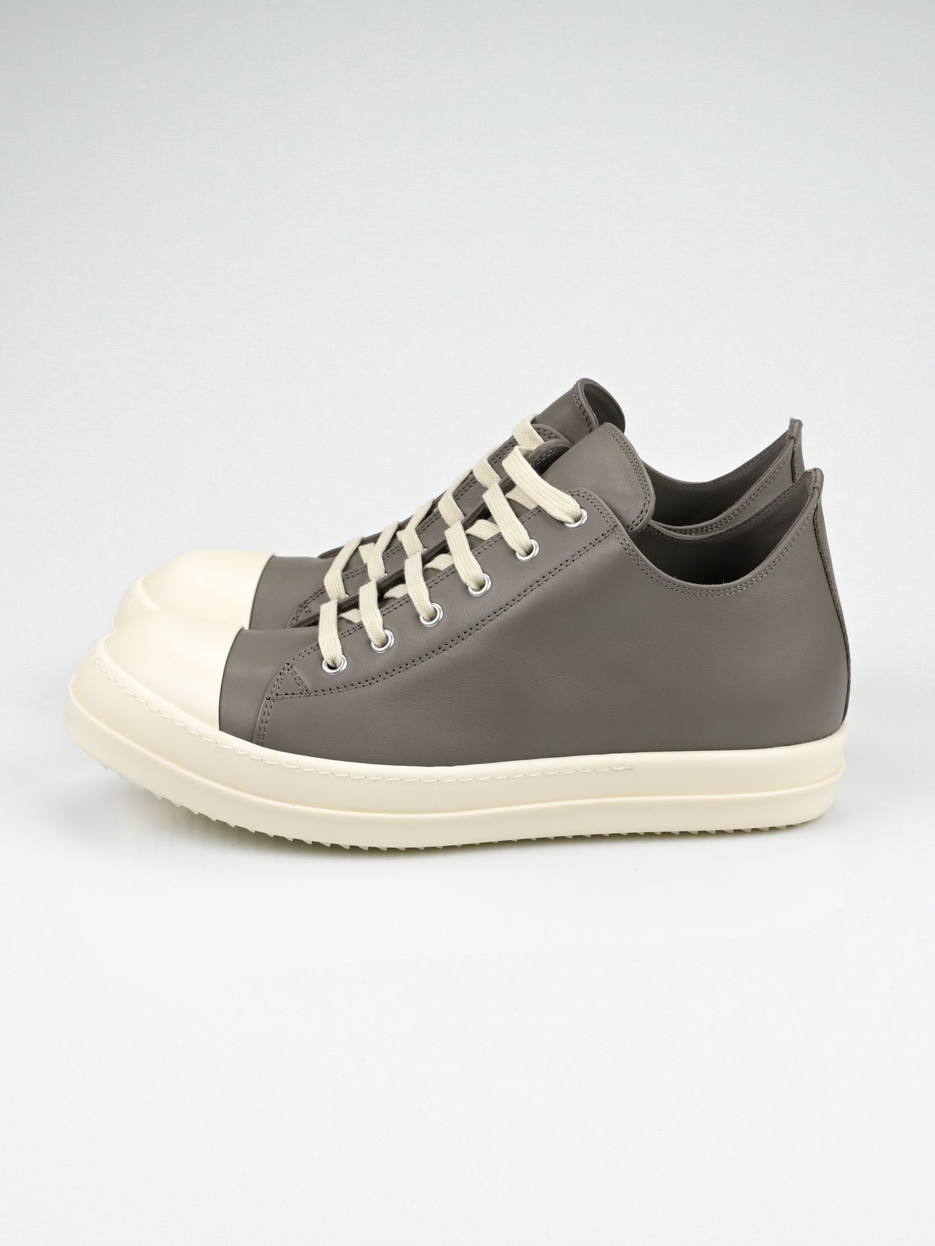 These Italian-made, dark-grey ramones low-tops feature ultra-smooth leather uppers with all of the signature design details, including milk rubber cap toes, stacked midsoles and shark-tooth soles.