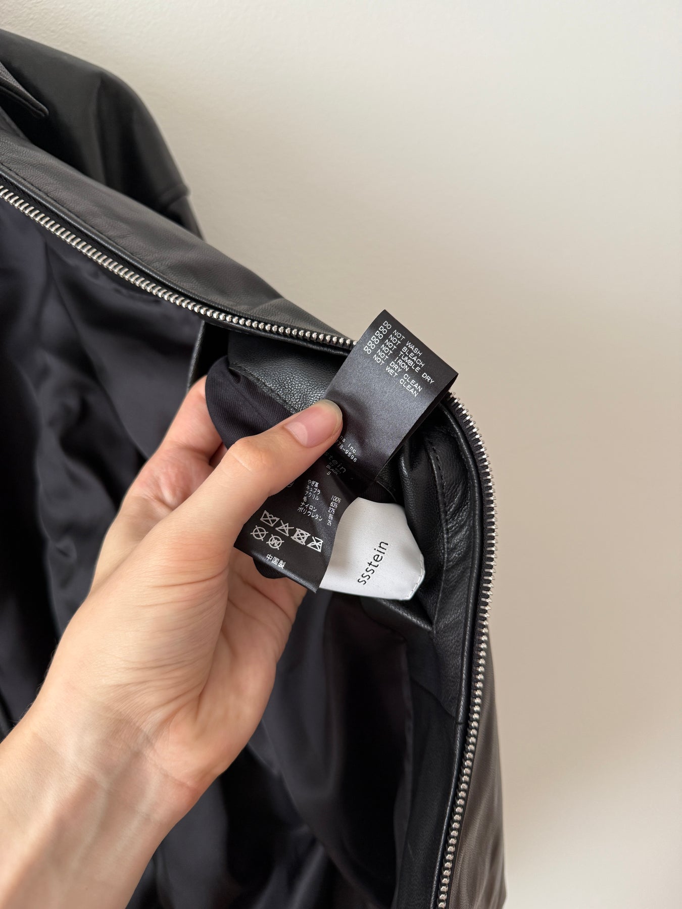 This jacket is made from goat leather, which has been given a supple and soft texture while retaining its firmness. Goat leather has a high fiber density and is more durable than cow leather. Despite this, it is only about as heavy as calf leather, making it extremely lightweight and supple. This time, the leather has been tanned using half-vegetable tanning, resulting in a deep color and unique leather look. This makes it an attractive leather that will age beautifully with each wear.