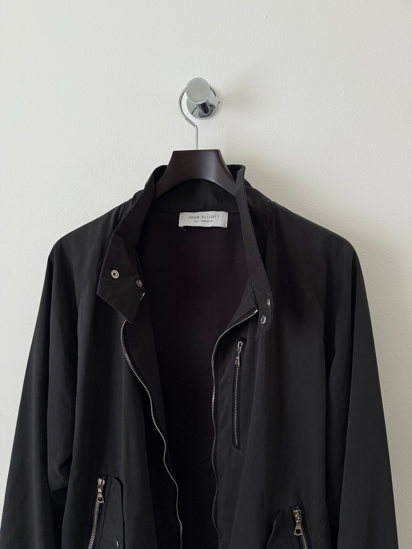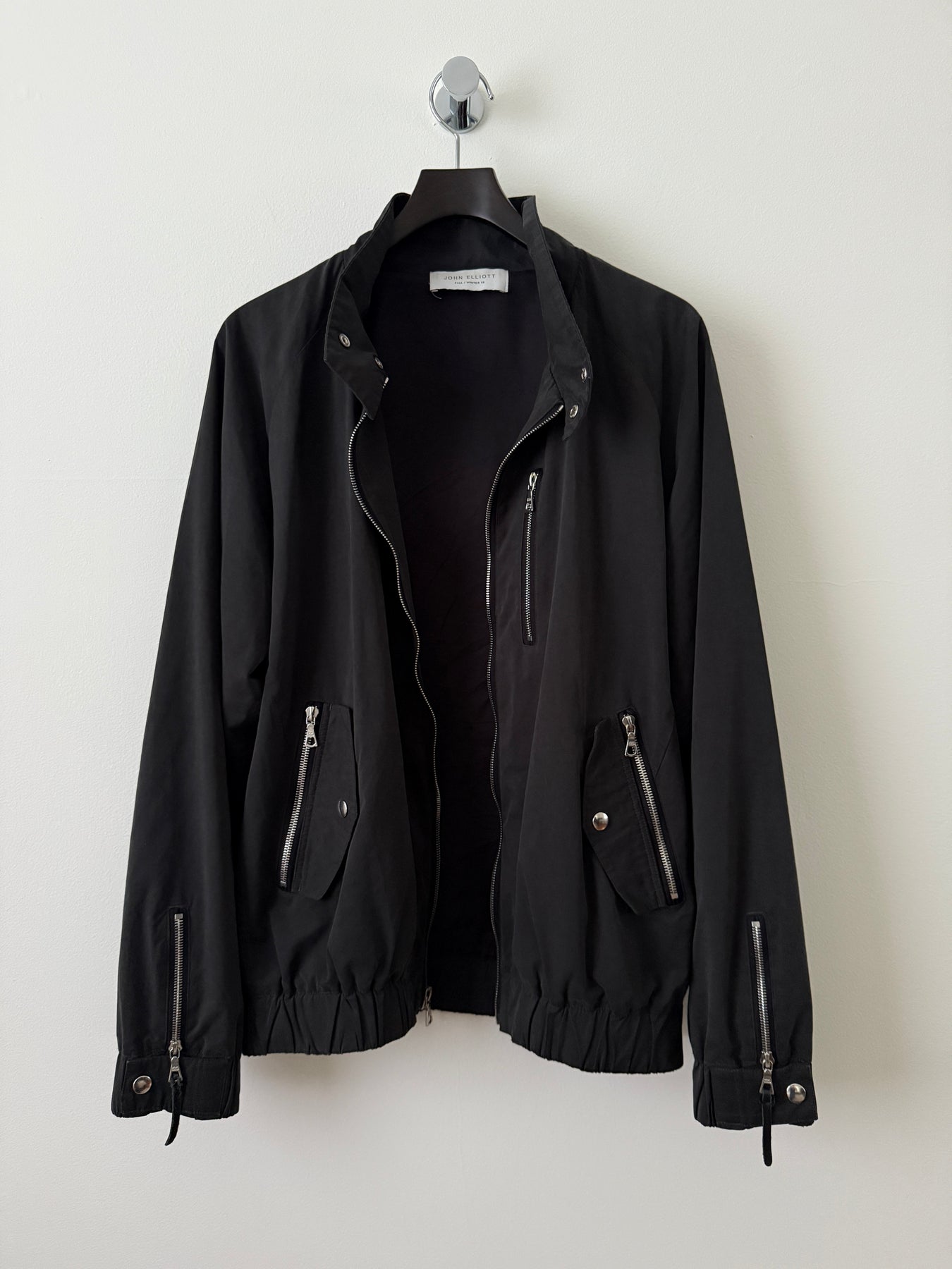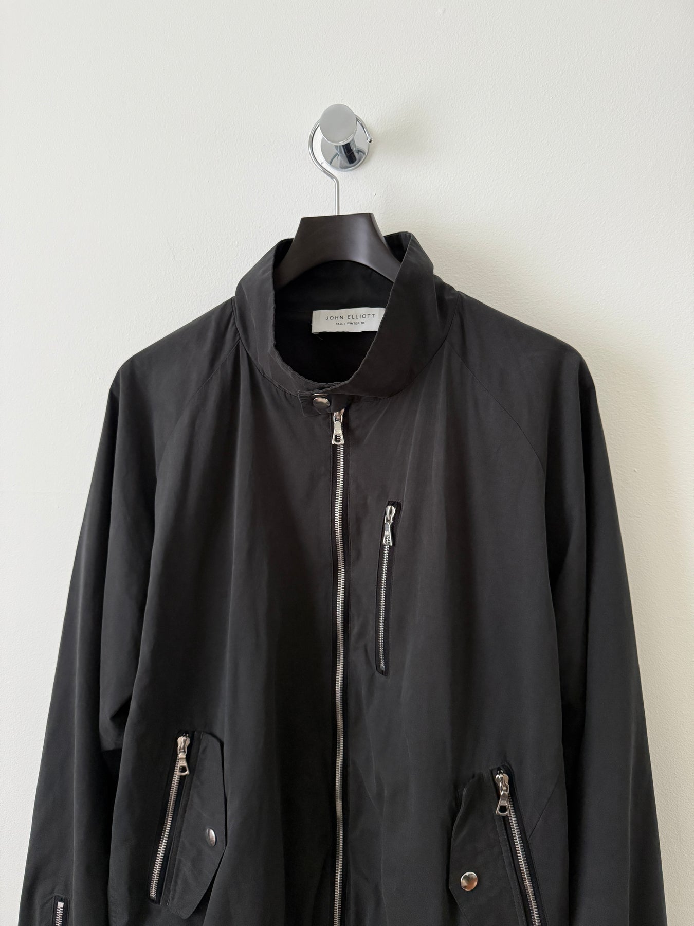 Zip closure at front. Zippered pocket at chest. Zippered pockets and flap pockets at waist. Zippered extension panel at sleeves. Press-stud tab fastening at elasticized cuffs. Elasticized hem. Silver-tone hardware. Tonal stitching. Body: 47% Polyester, 37% Cotton, 16% Nylon. Lining: 100% Cupro.