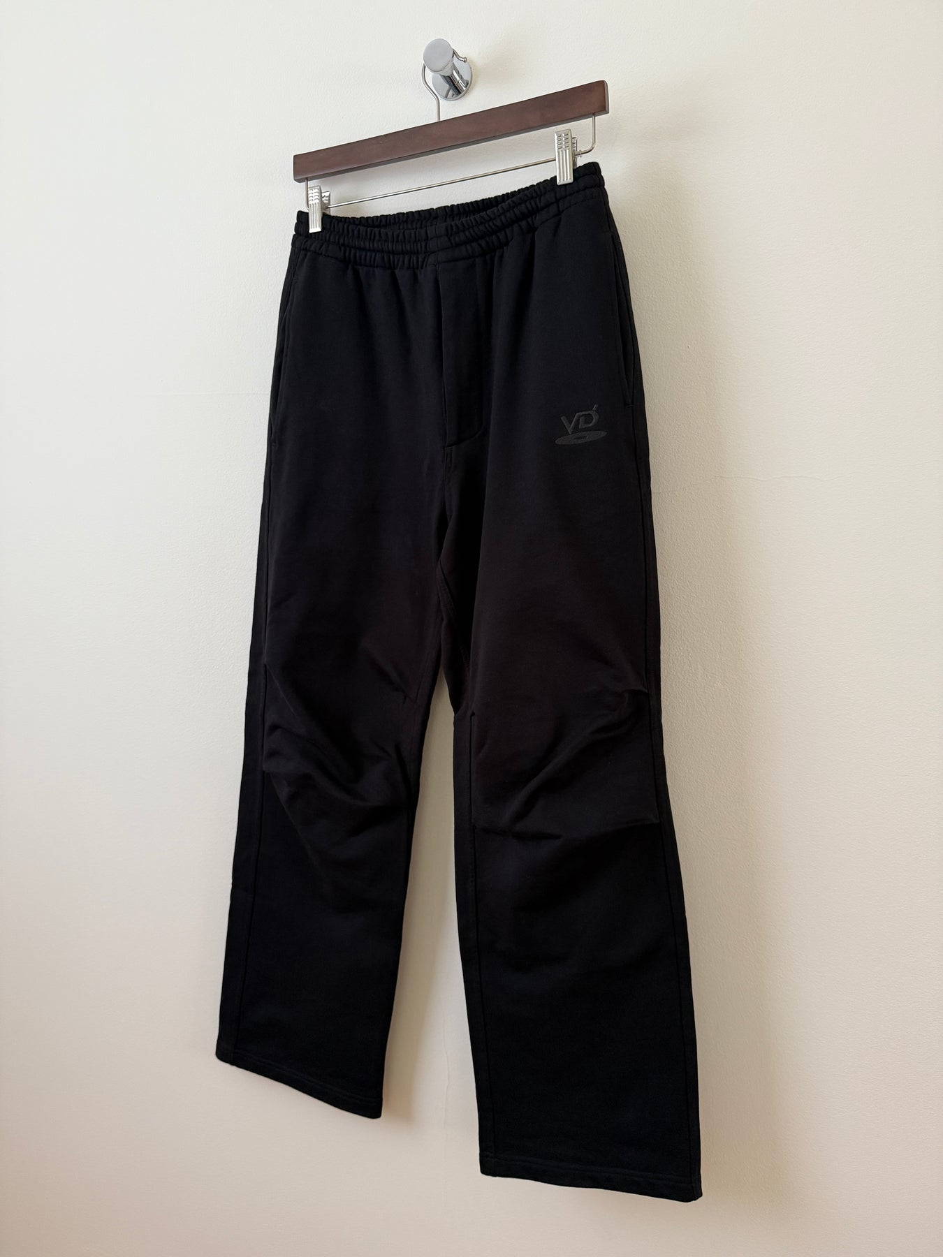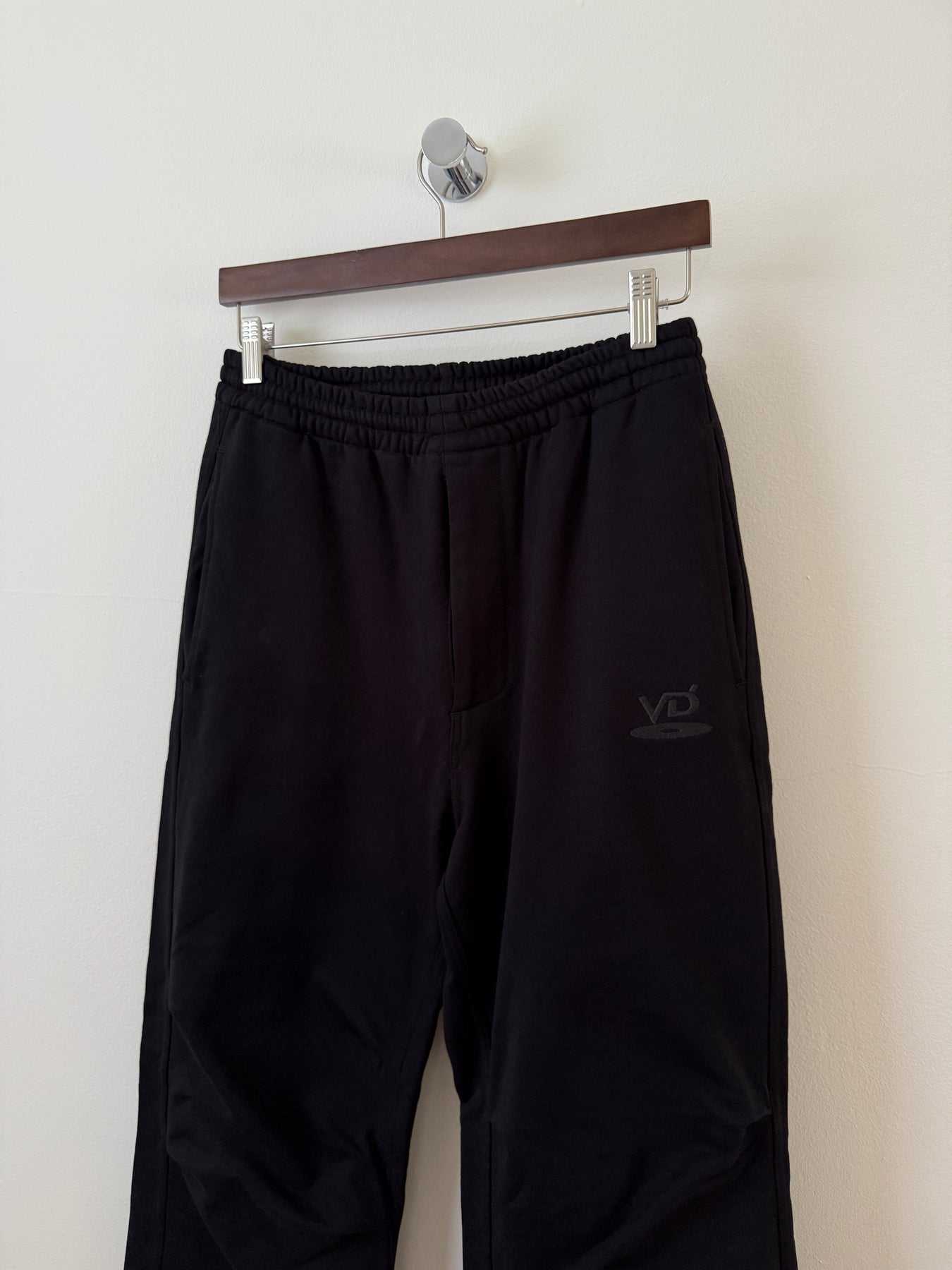 The VD HEAVYWEIGHT DARTED SWEATPANTS are made of 100% cotton with UV-resistant and anti-pilling technology. The fabric is tightly weaved to create a matte like texture, while deflecting any harmful pollutants and sun rays during contact. With dart details on the knees, the sweatpants create an hourglass shape silhouette. Pockets are lined with cotton, zippers are present on the fly and rear pocket, and the waistband features thick, heavy-duty cotton drawstrings. Tonal ‘VD’ embroidery is found below the left pocket. Much like their previous Walkman logo, the VD logo is Vuja De’s reiteration of the classic DVD logo in our own reminiscence.