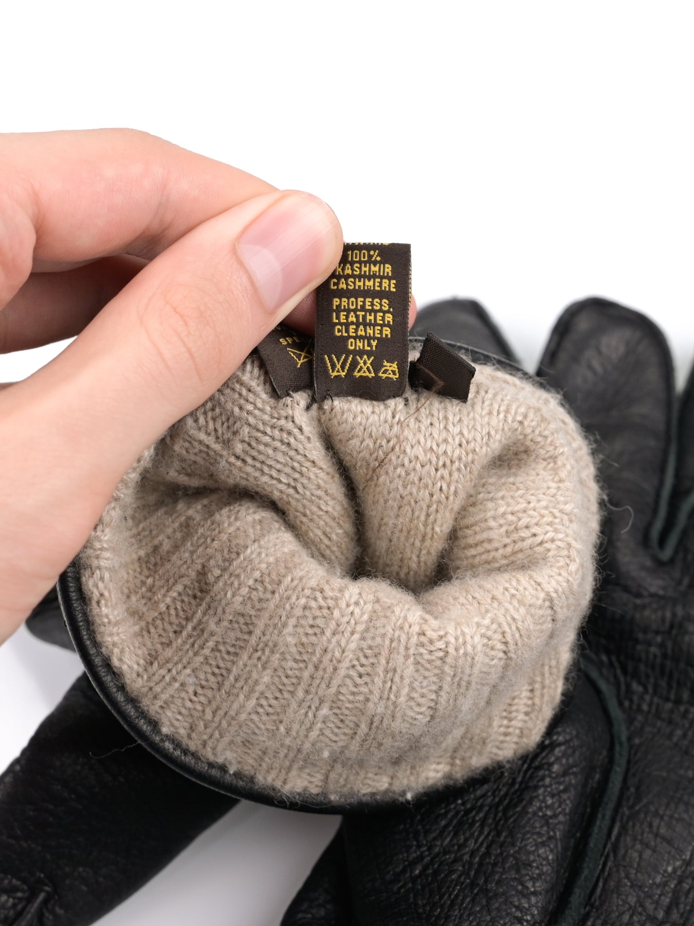 A soft-grained black leather exterior with a beige cashmere lining.