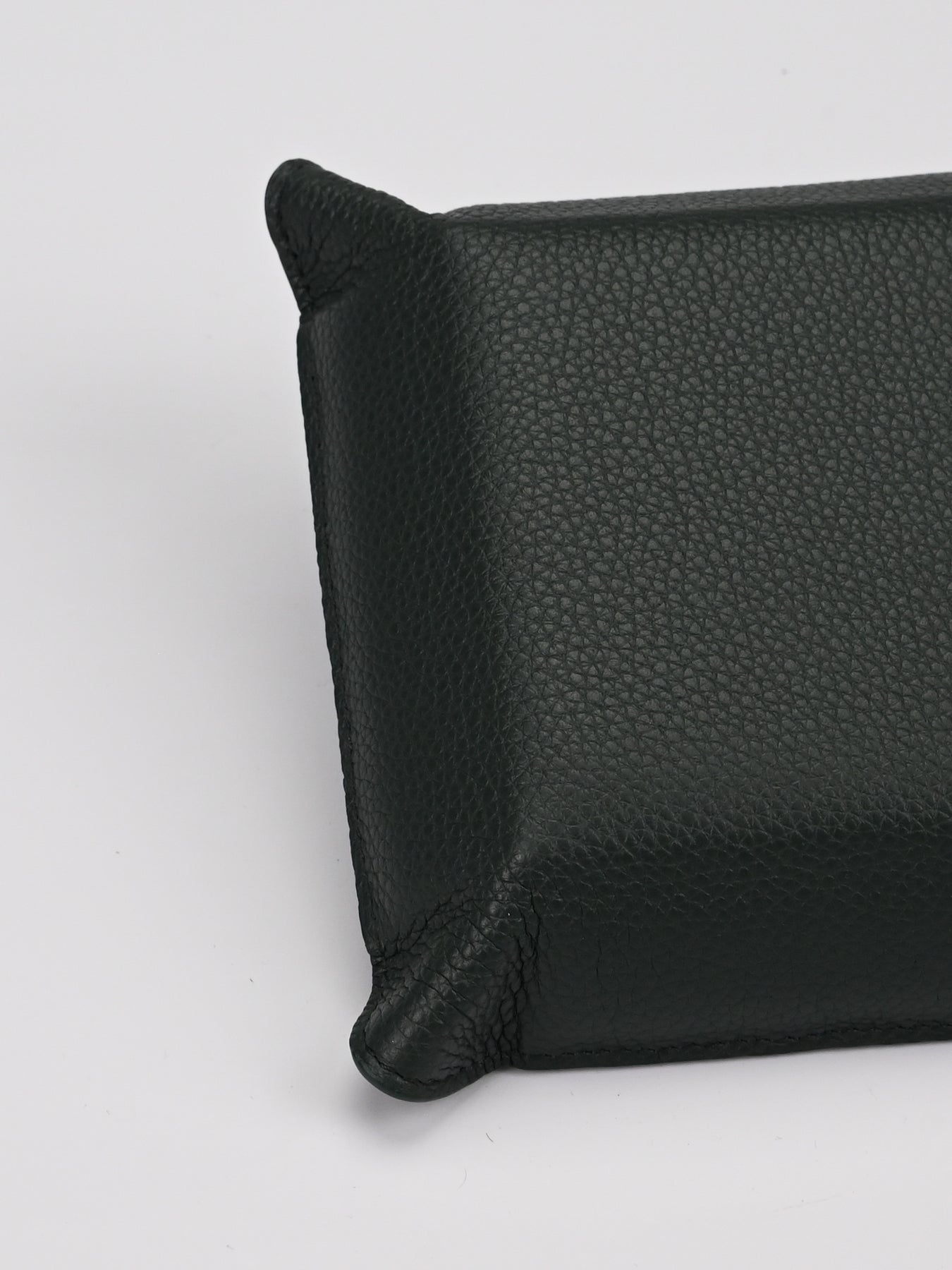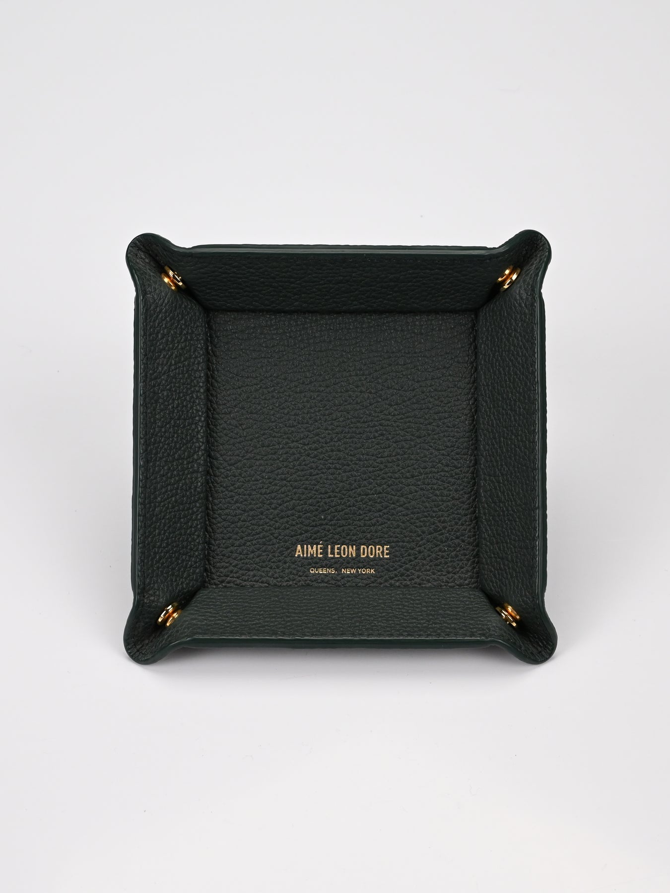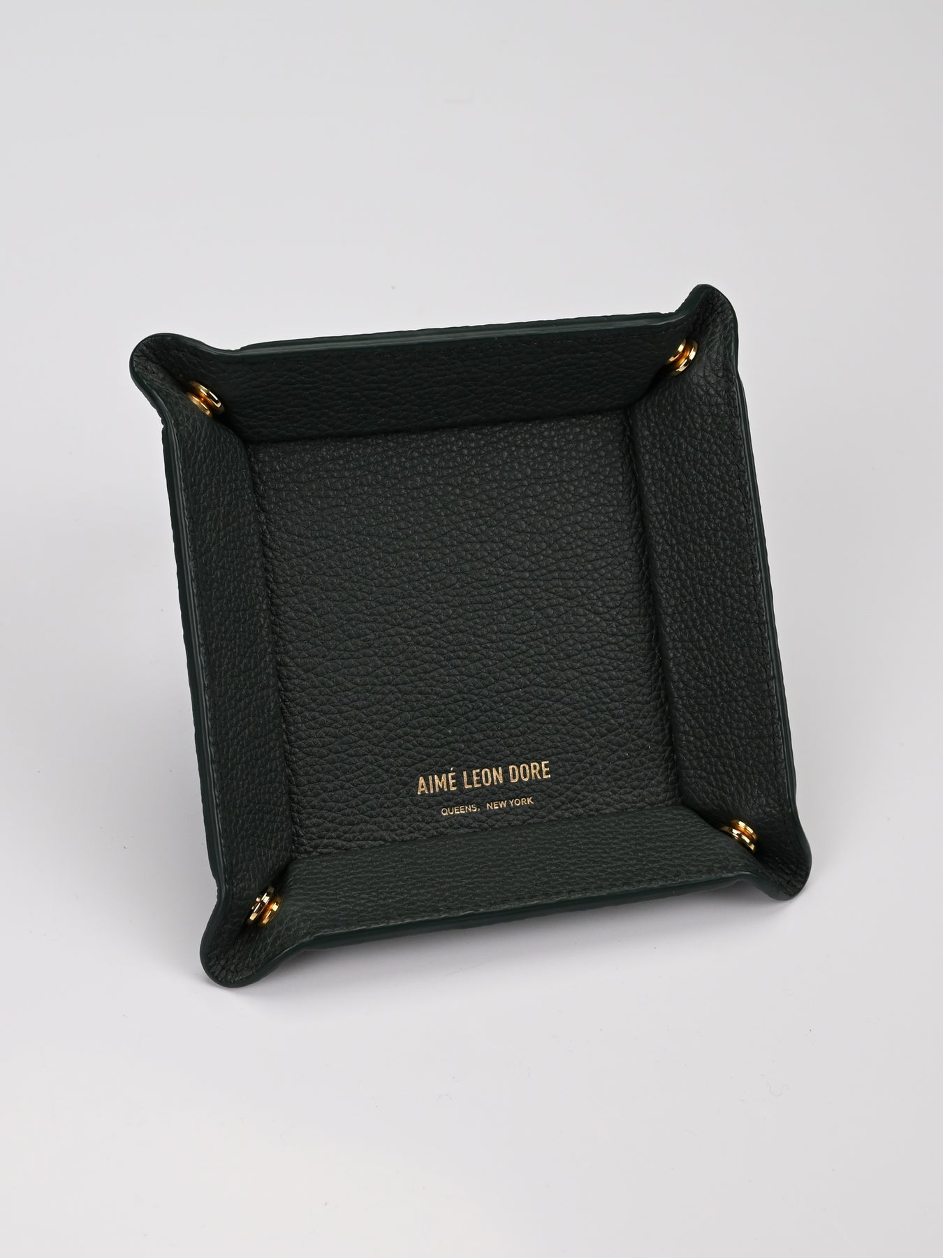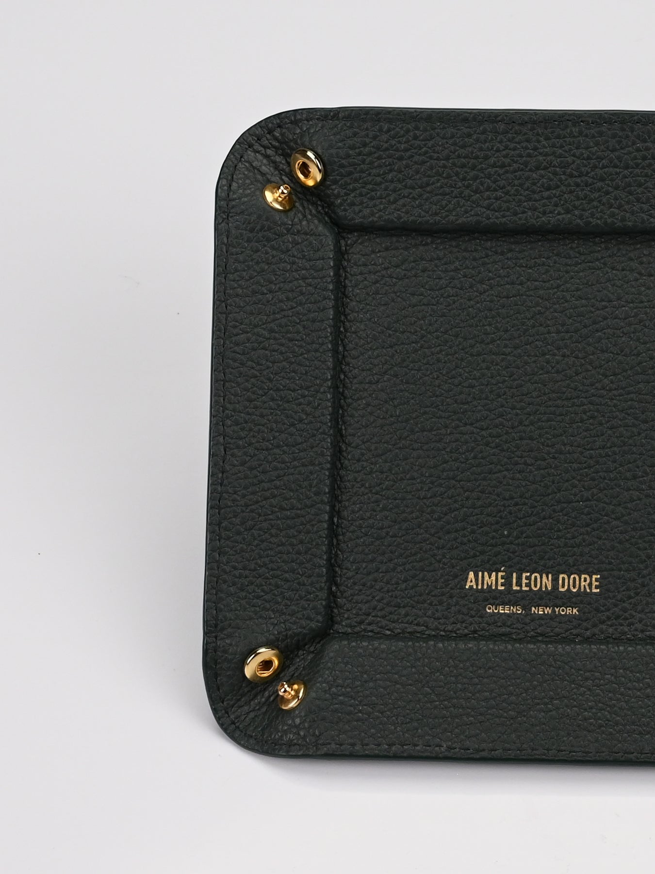 -Gold foil debossed logo -4 snap corners; unsnap to pack flat -Hardware: Zamac & Brass -Body: 100% Calf Leather -Made in Spain -Measures 6” W x 6” H