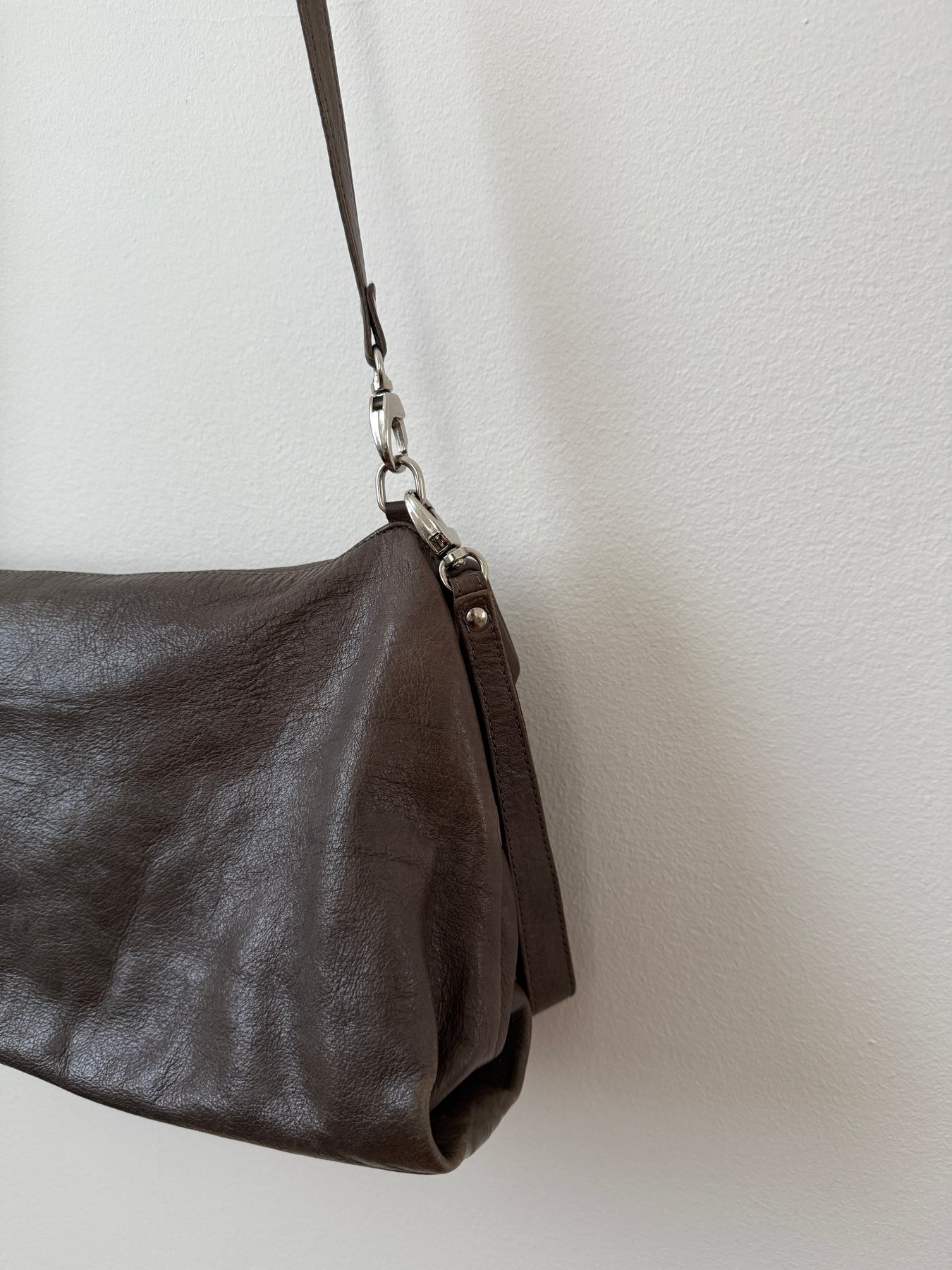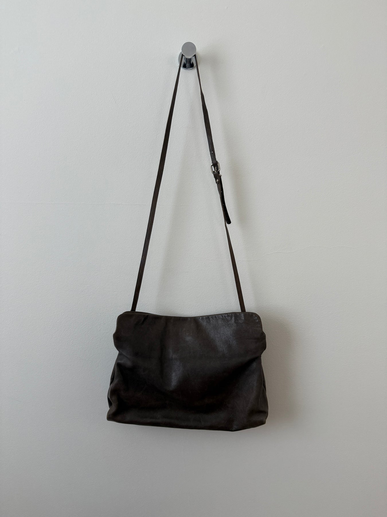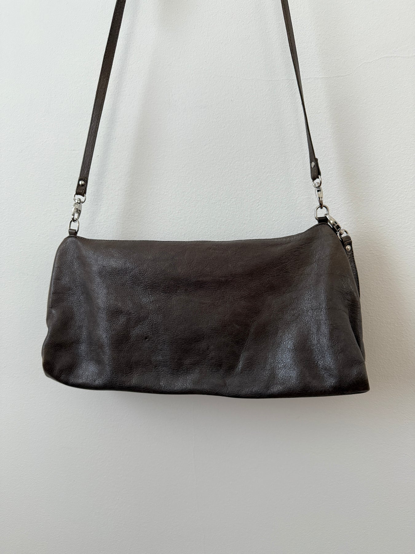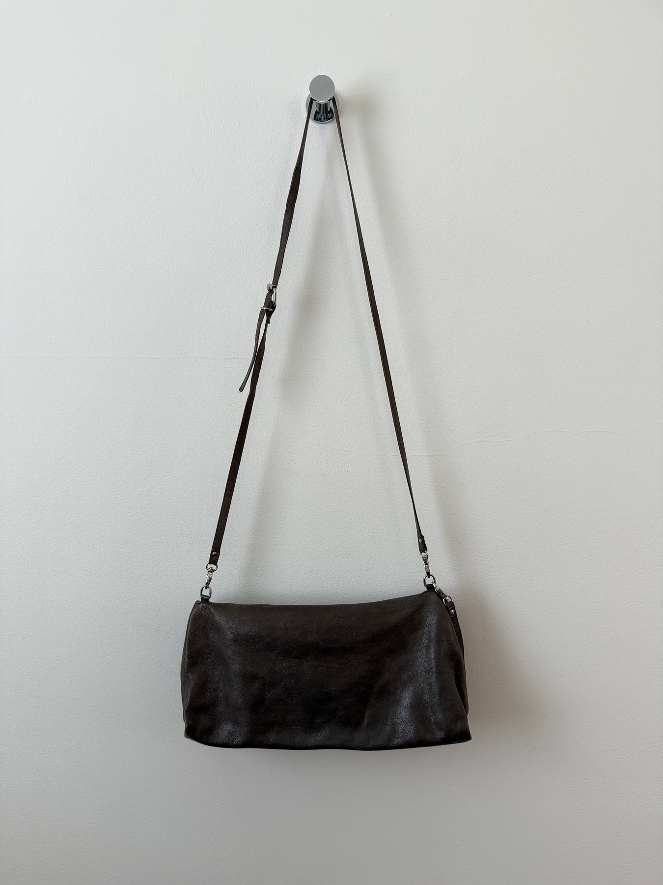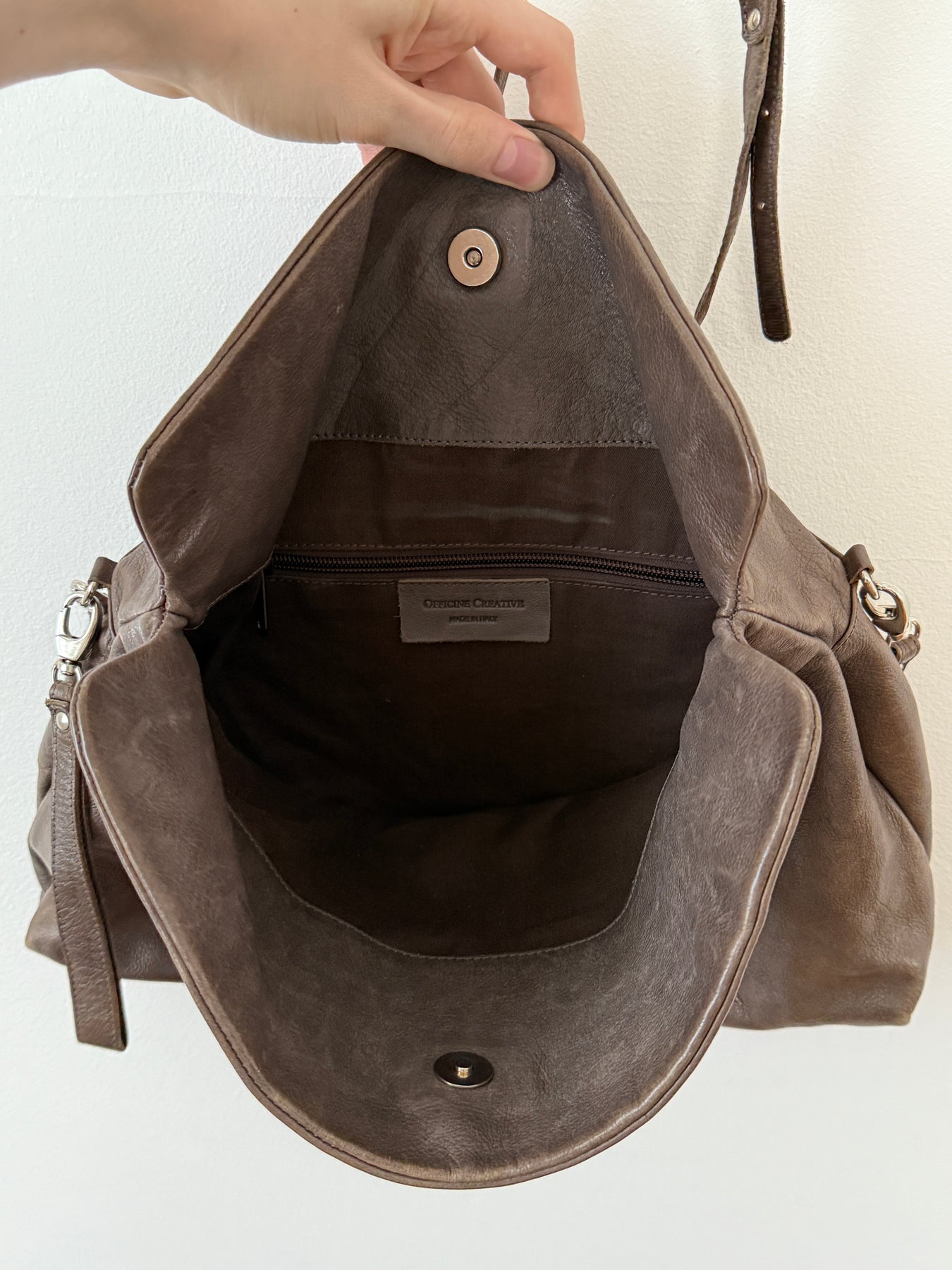 Amazing bag made of high quality leather. Great craftsmanship as expected from Officine Creative. Comes with a snap button for closure. One interior pocket with zip. Removable keychain. Removable adjustable leather strap.
