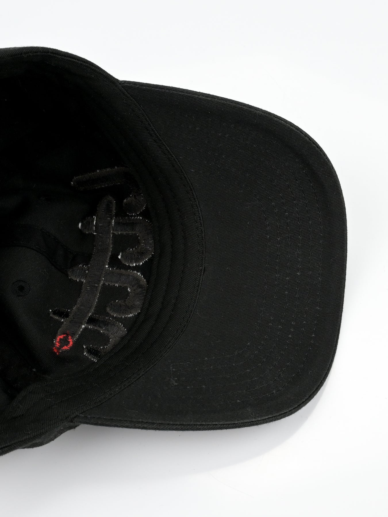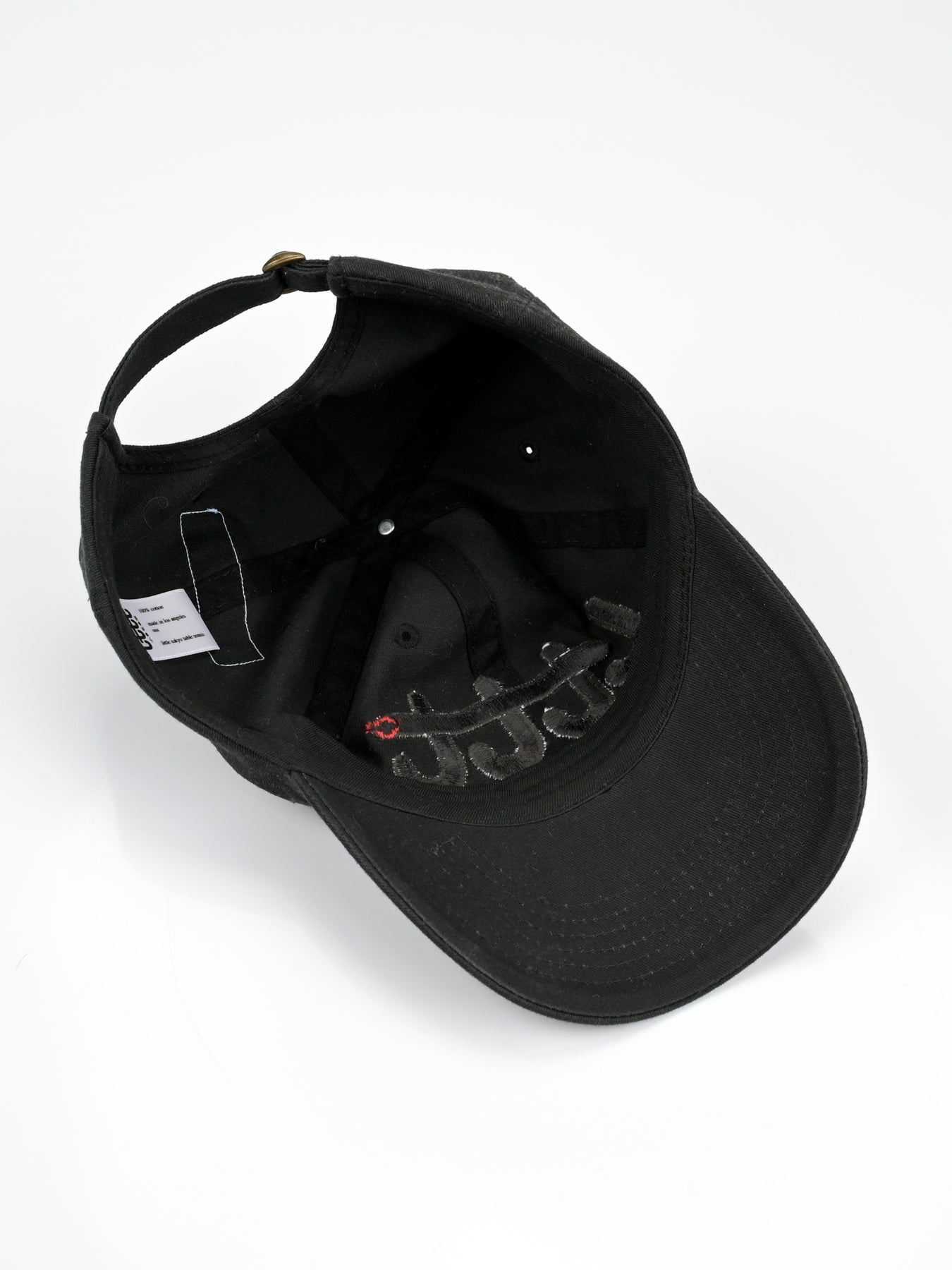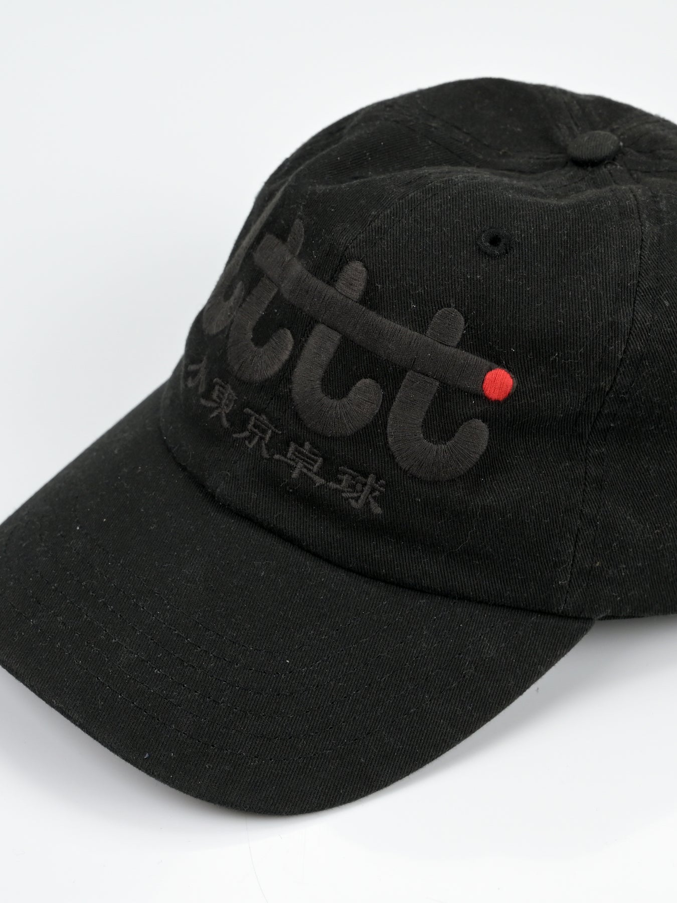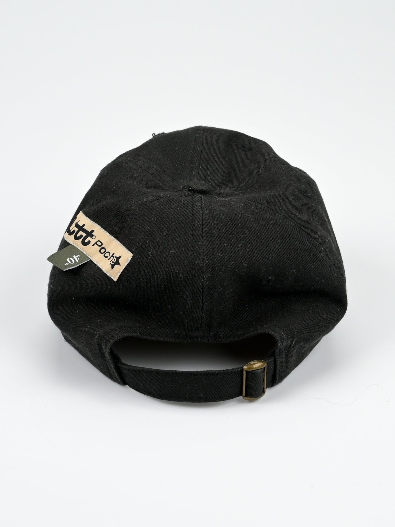 LTTT Club CAP in Black / Black. Eternal little tokyo table tennis logo. Embroidery 4.5 inches wide center front. LTTT/Poche woven label and tab label.