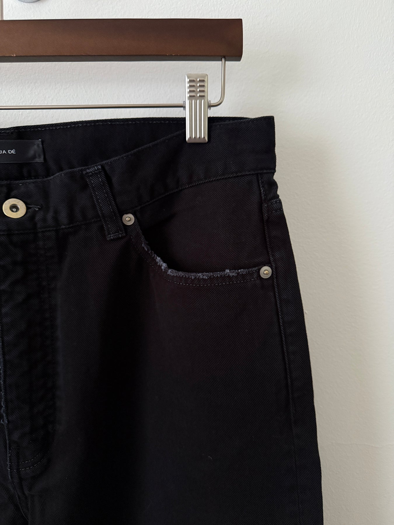 Classic five-pocket jeans in a relaxed fit made with soft 13.5oz Japanese denim with tonal topstitching and a zip fly closure. Slight distressing at front and back pockets, as well as the leg openings.