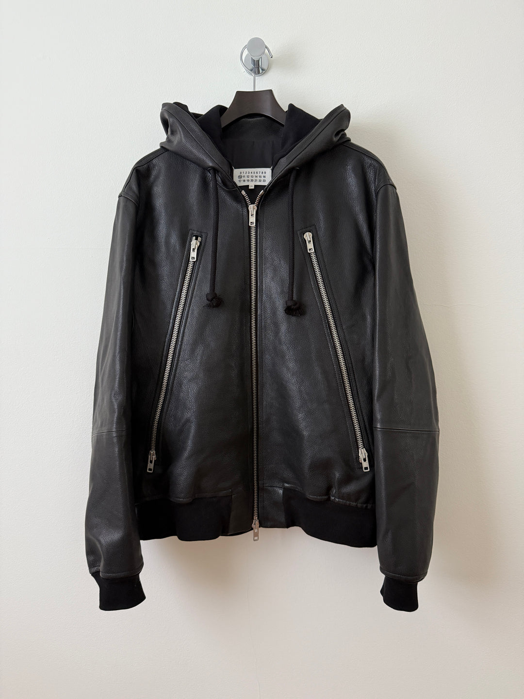 5 Zip Goat Leather Hooded Jacket