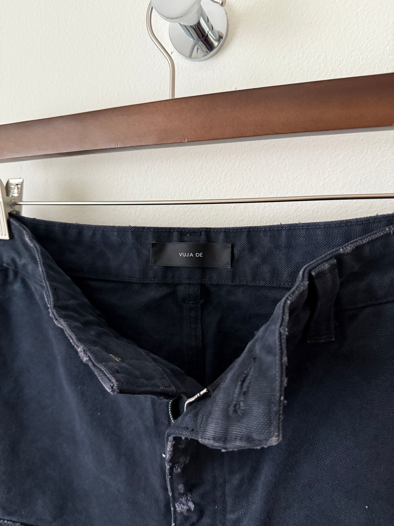 Heavy-weight organic cotton canvas with released hems. Garment-dyed and sunfaded throughout, finished with light distressing. Features belt loops, two front snap pockets, zip-fly, top stitching in black, straight-leg, relaxed fit and a mid-rise. Body: 100% Cotton. Lining: 65% Polyester 35% Cotton.