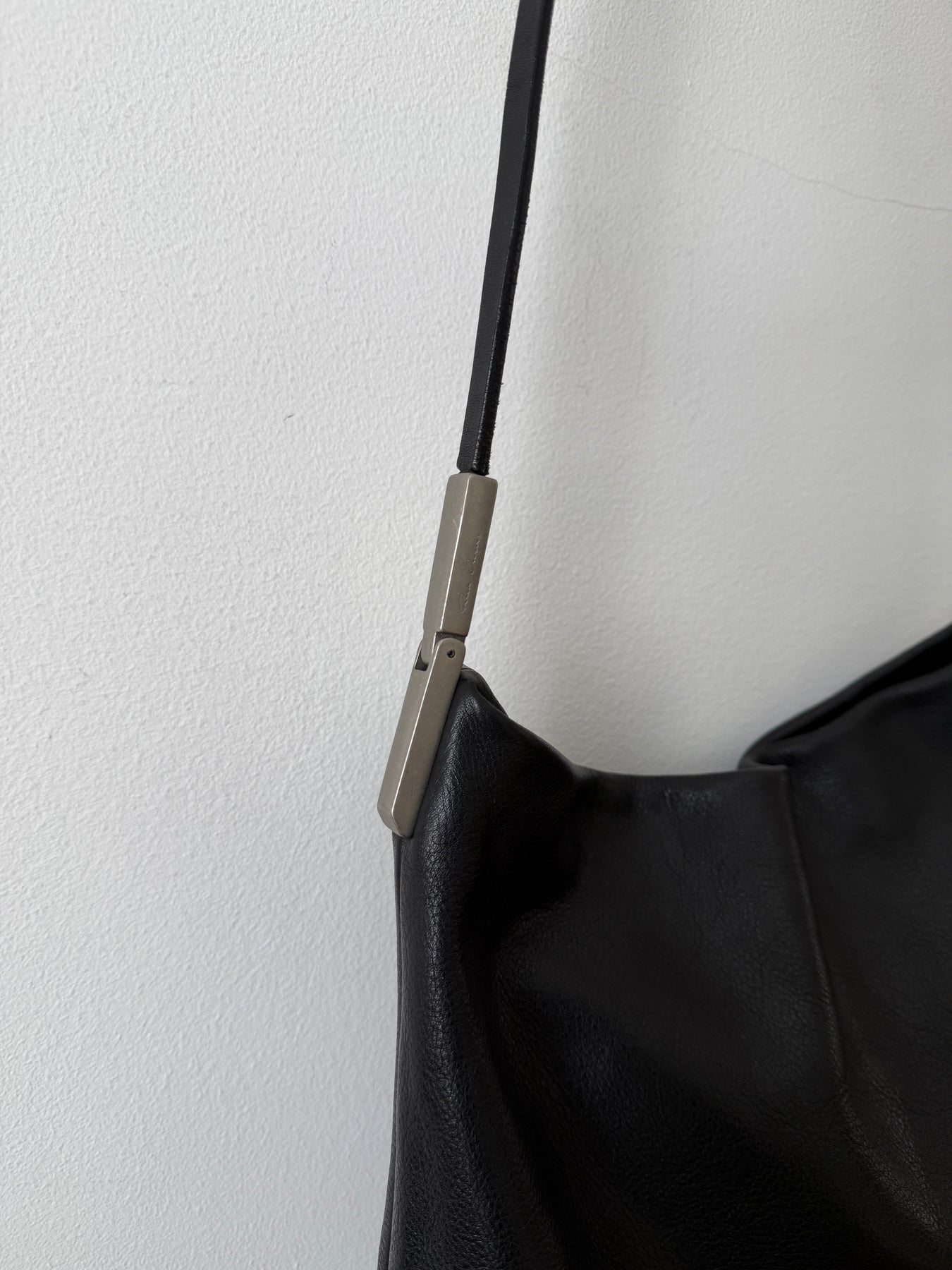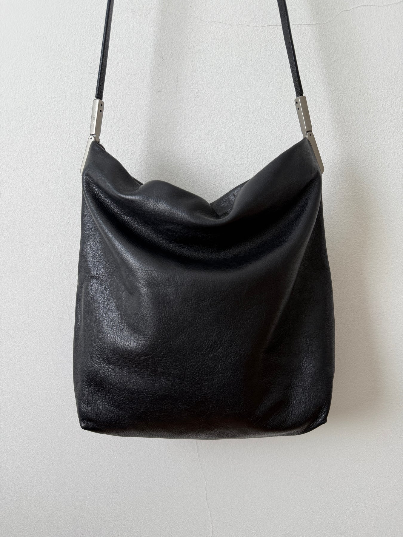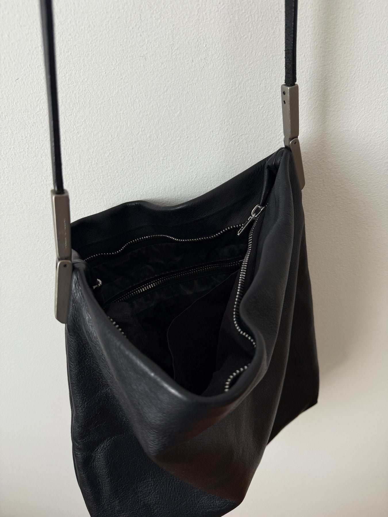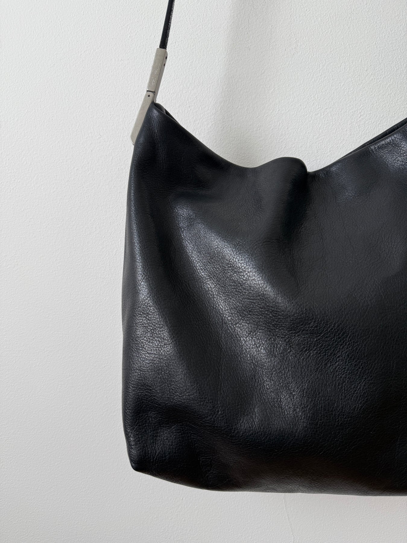 Super soft cow leather shoulder bag detailed with top zip closure, silver-tone metal detail and leather shoulder strap, cotton lining featuring one inner zip pocket and an inner open one.