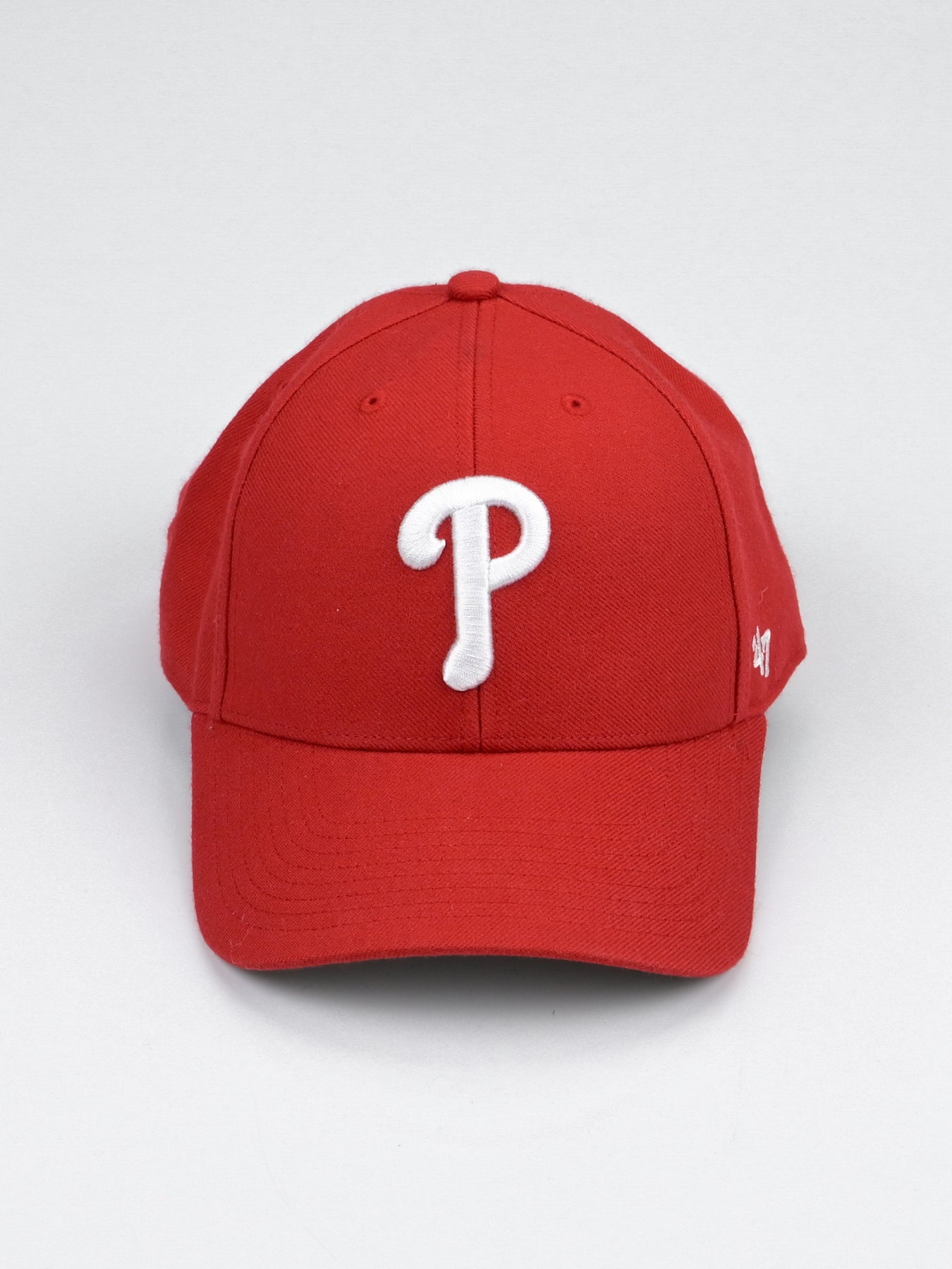 The '47 MVP has a structured crown, a curved visor, and an adjustable hook and loop closure. The front has raised embroidery and the back has flat embroidery. Made from Wool Blend material.