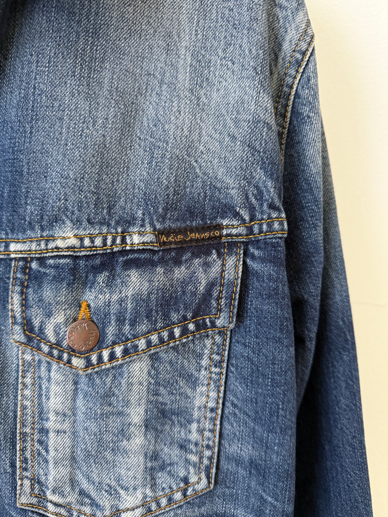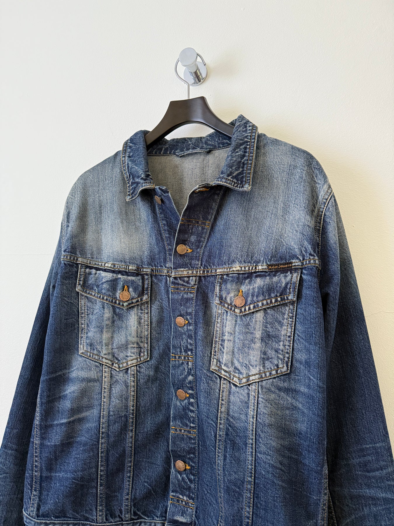Nudie Jeans Co. Faded Denim Jean Jacket. Great fading, everyone needs a jean jacket in rotation. Versatile, classic, Nudie is loved and respected by all.