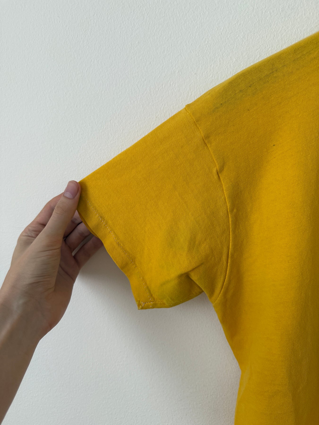 Really sick taxi yellow shirt from 1981 promoting a run for renewable resources. Great wear and distressing.