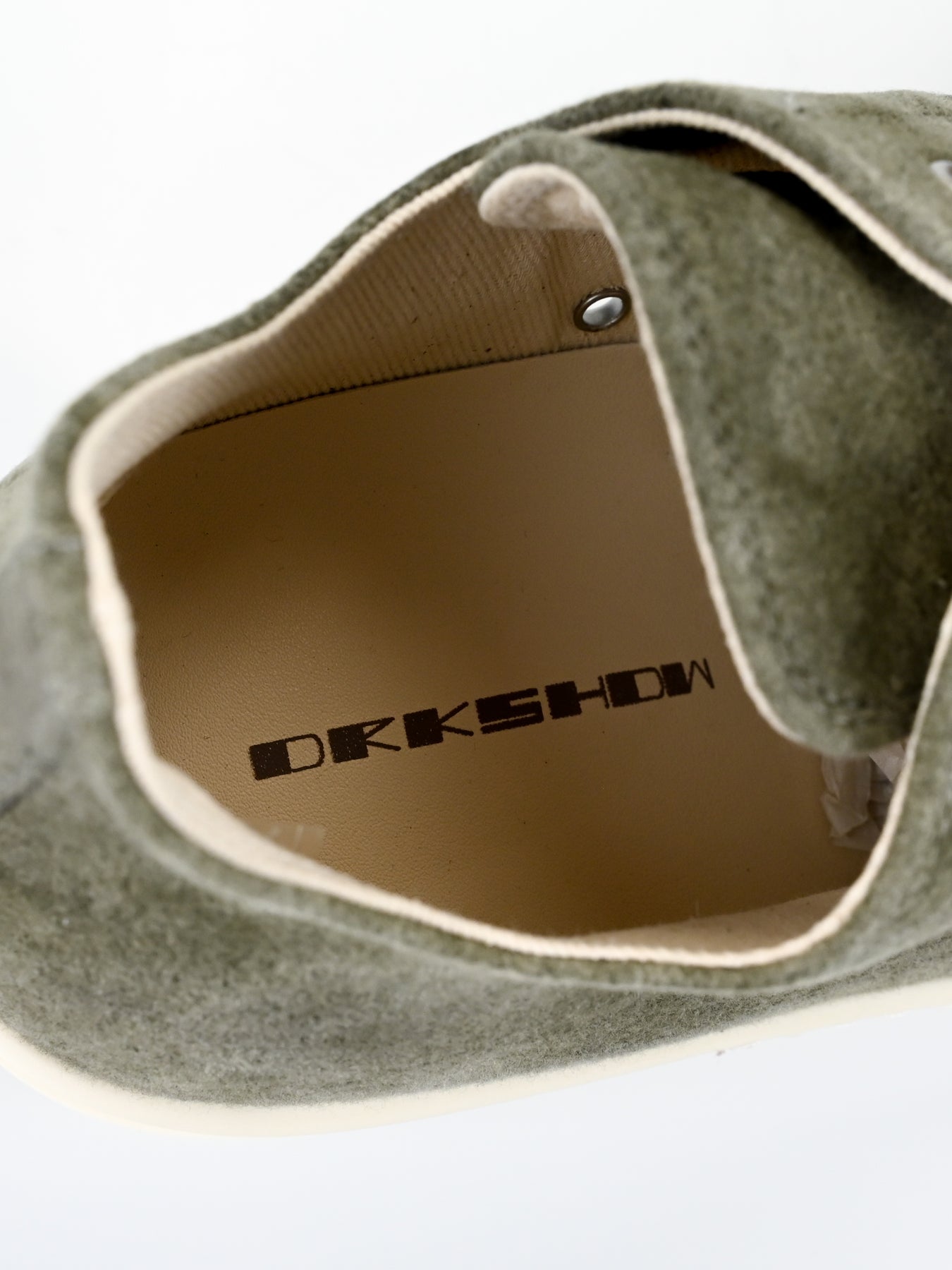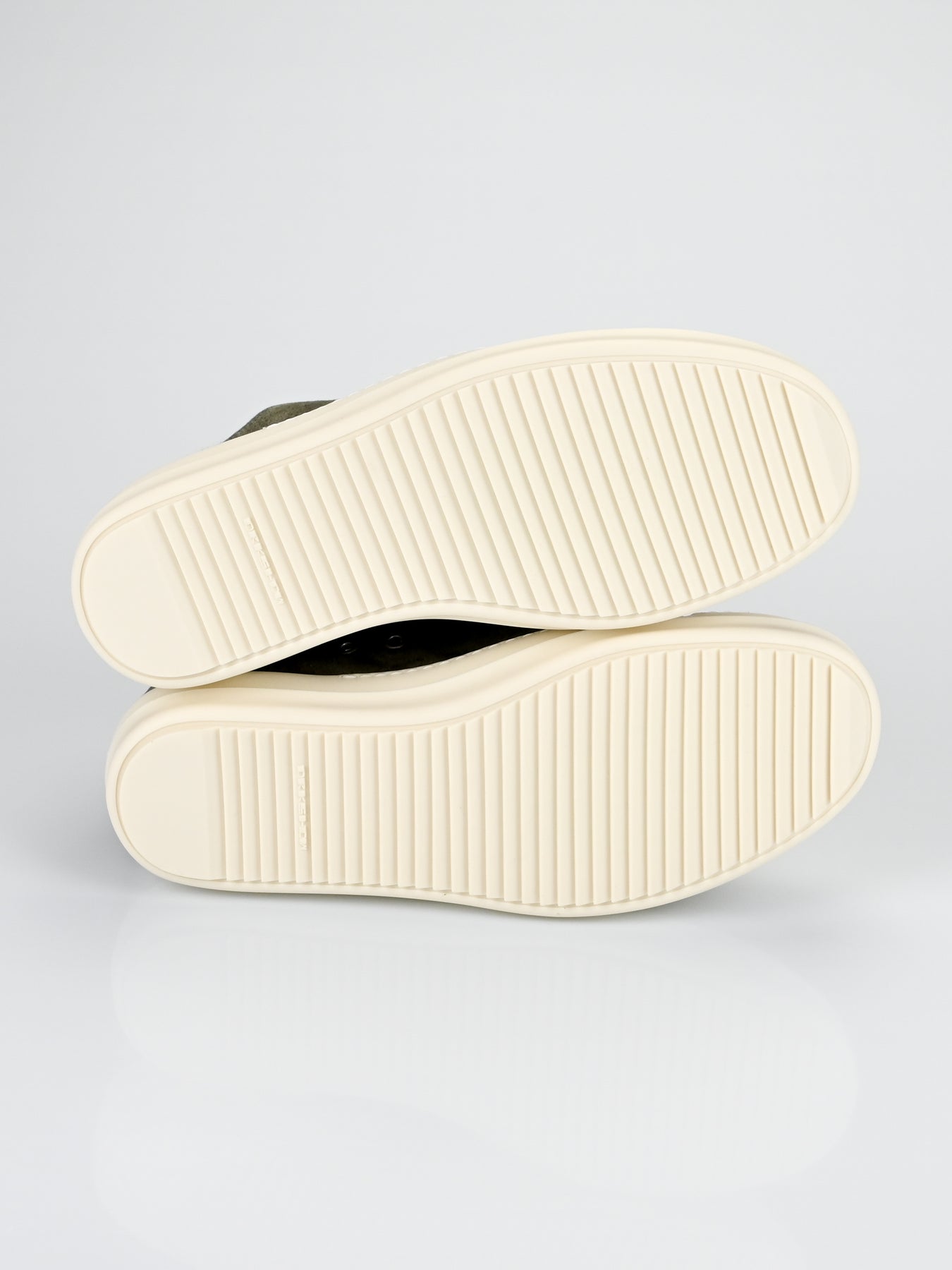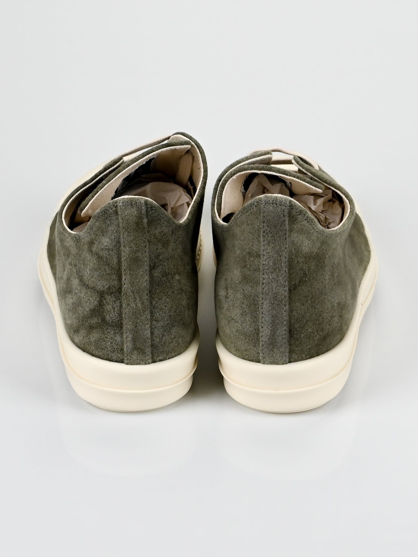 Sage colorway of low-top Rick Owens Ramones. High quality, suede-like upper and milk midsole.